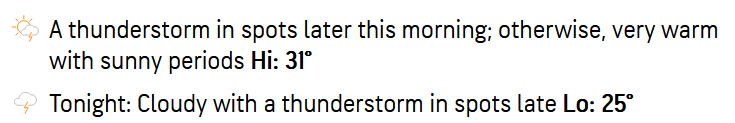 It's something of a hedge-bet: there will be clouds, sun, rain and heat.